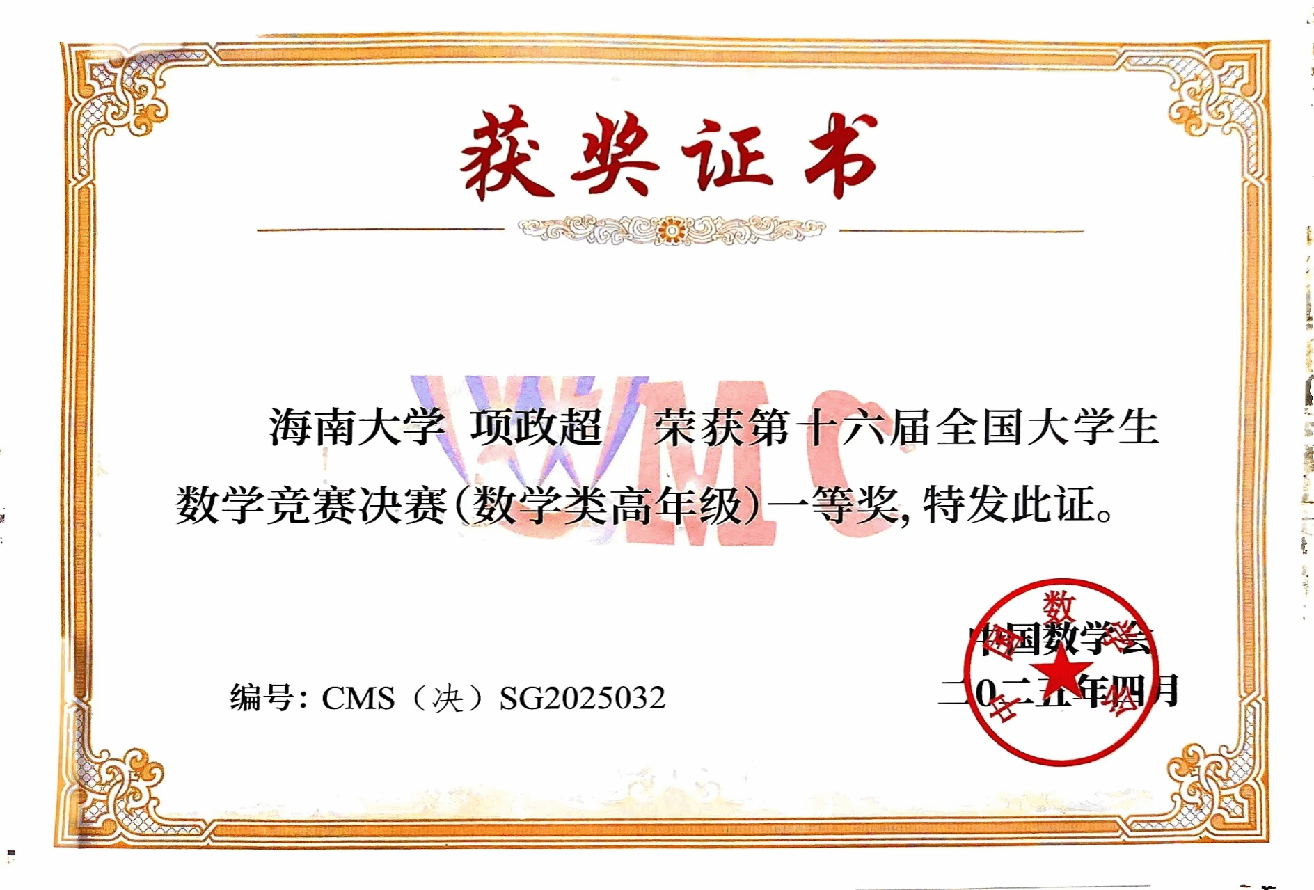 4月12日,第十六届全国大学生数学竞赛决赛在浙江师范大学举行。我校2022级数学与应用数学专业基地班学生项政超荣获数学类高年级组一等奖,2023级人工智能专业刘连军荣获非数学专业A类一等奖,实现了海南赛区在该项赛事上新的历史性突破。此外,2023级数学与应用数学专业基地班周健翔和2023级生物医学工程专业徐志豪分别获得了数学类和非数学类的三等奖。