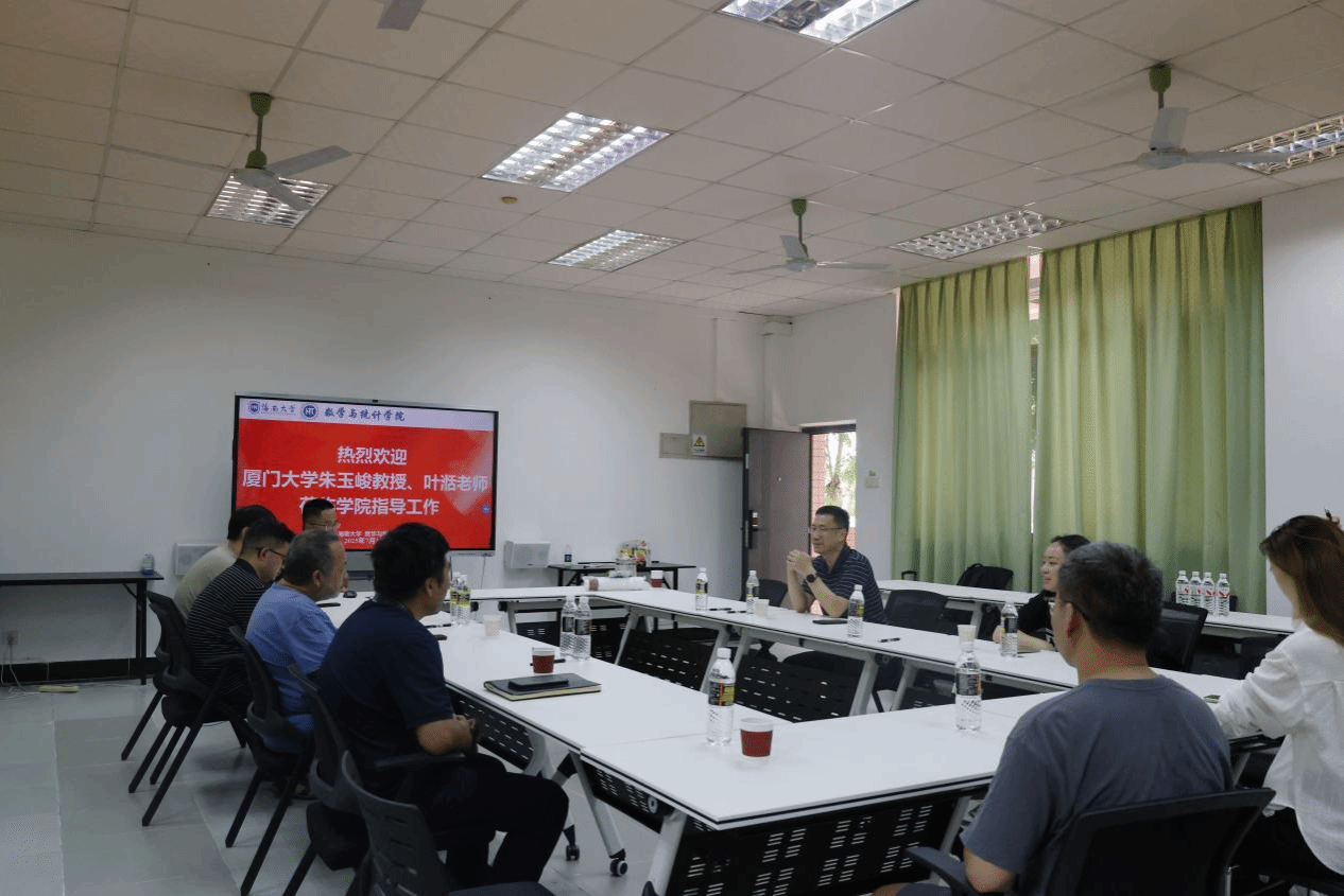 7月11日上午,国家天元数学东南中心执行委员会委员兼秘书、厦门大学朱玉峻教授与中心办公室执行主任叶湉老师到访yl6809永利官网,与学院相关领导及教师代表进行了亲切交流。